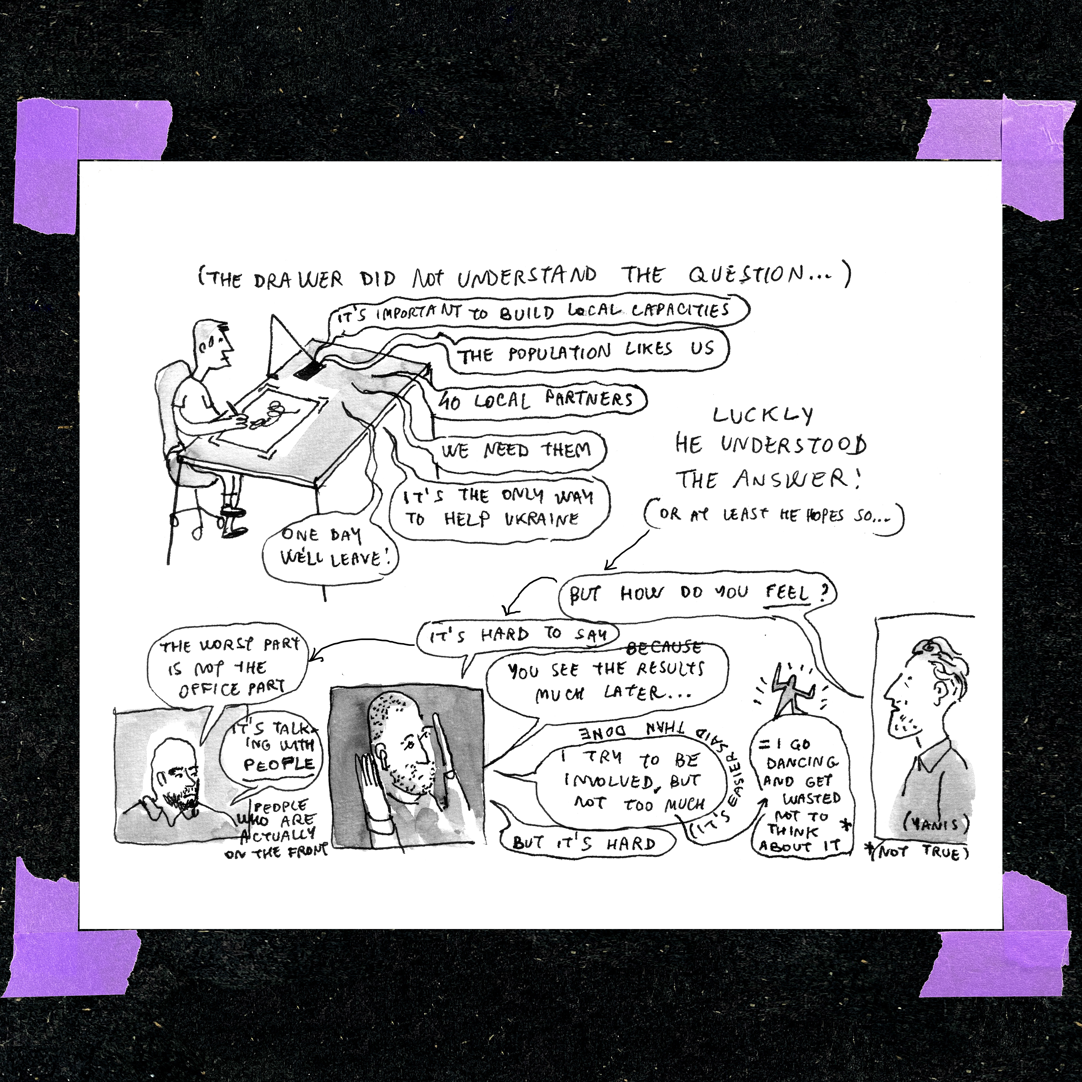 association. Conference about NGO professionals involved in a mission for demining Ukraine.