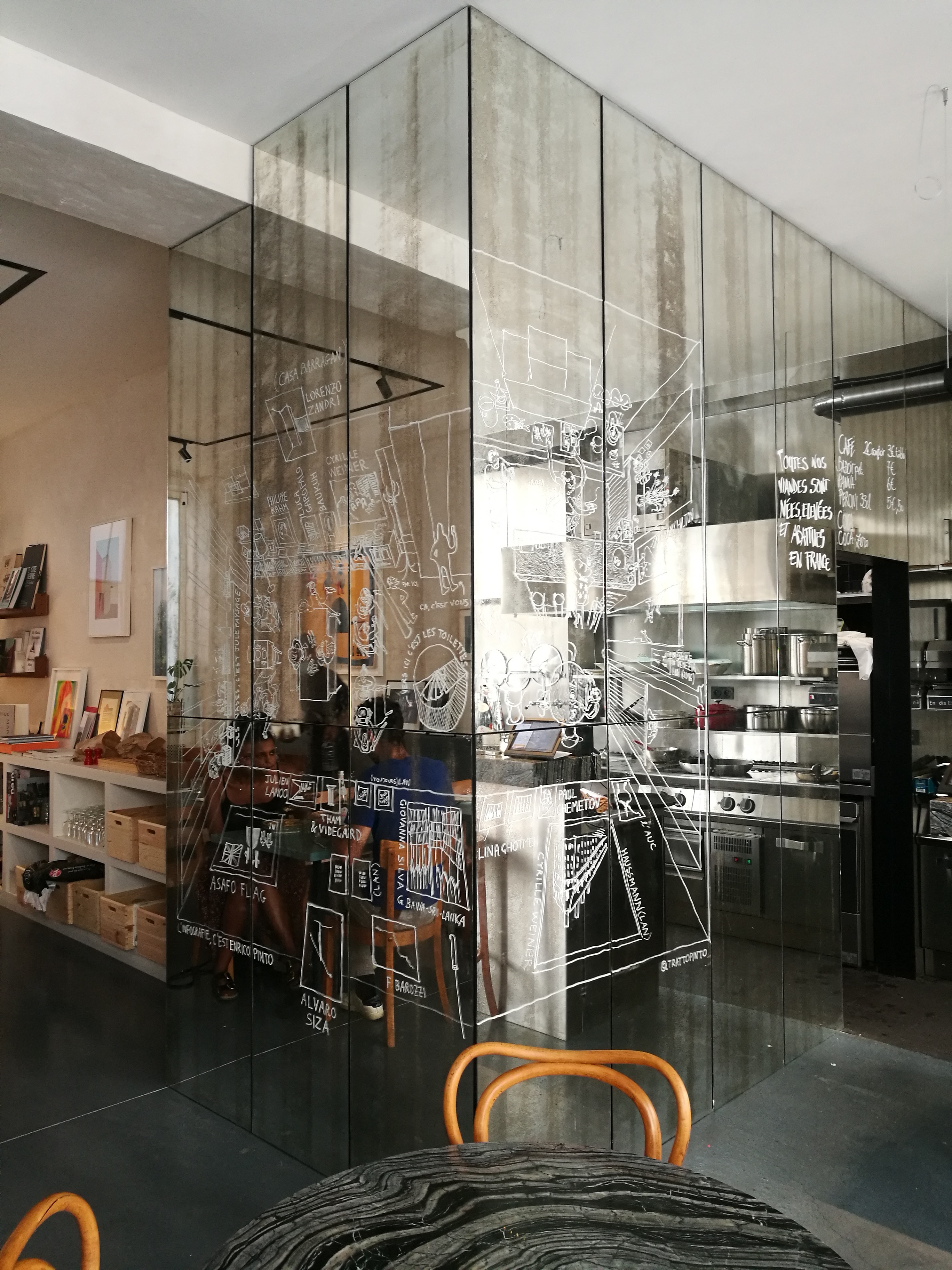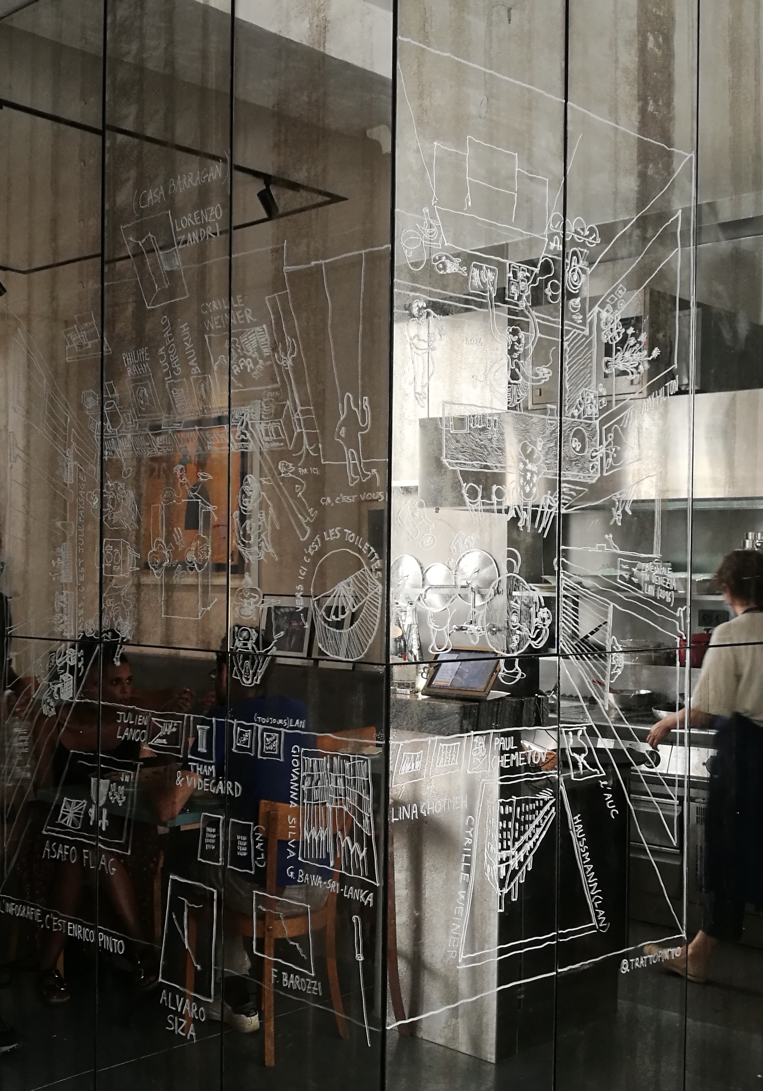 Chalk marker on mirrored glass, 2020